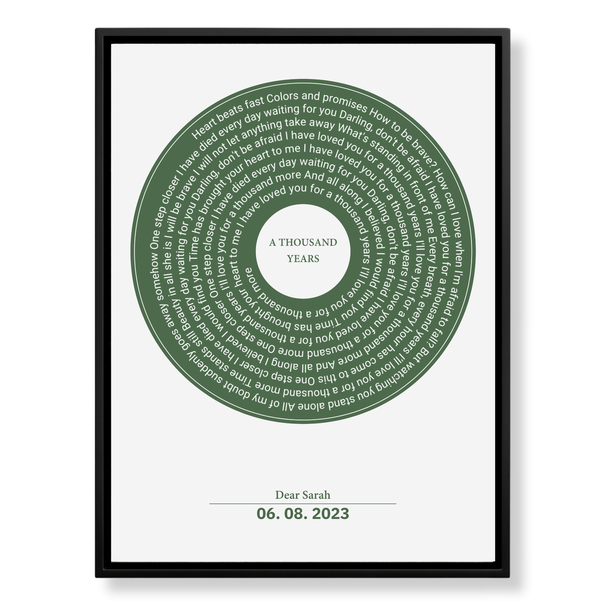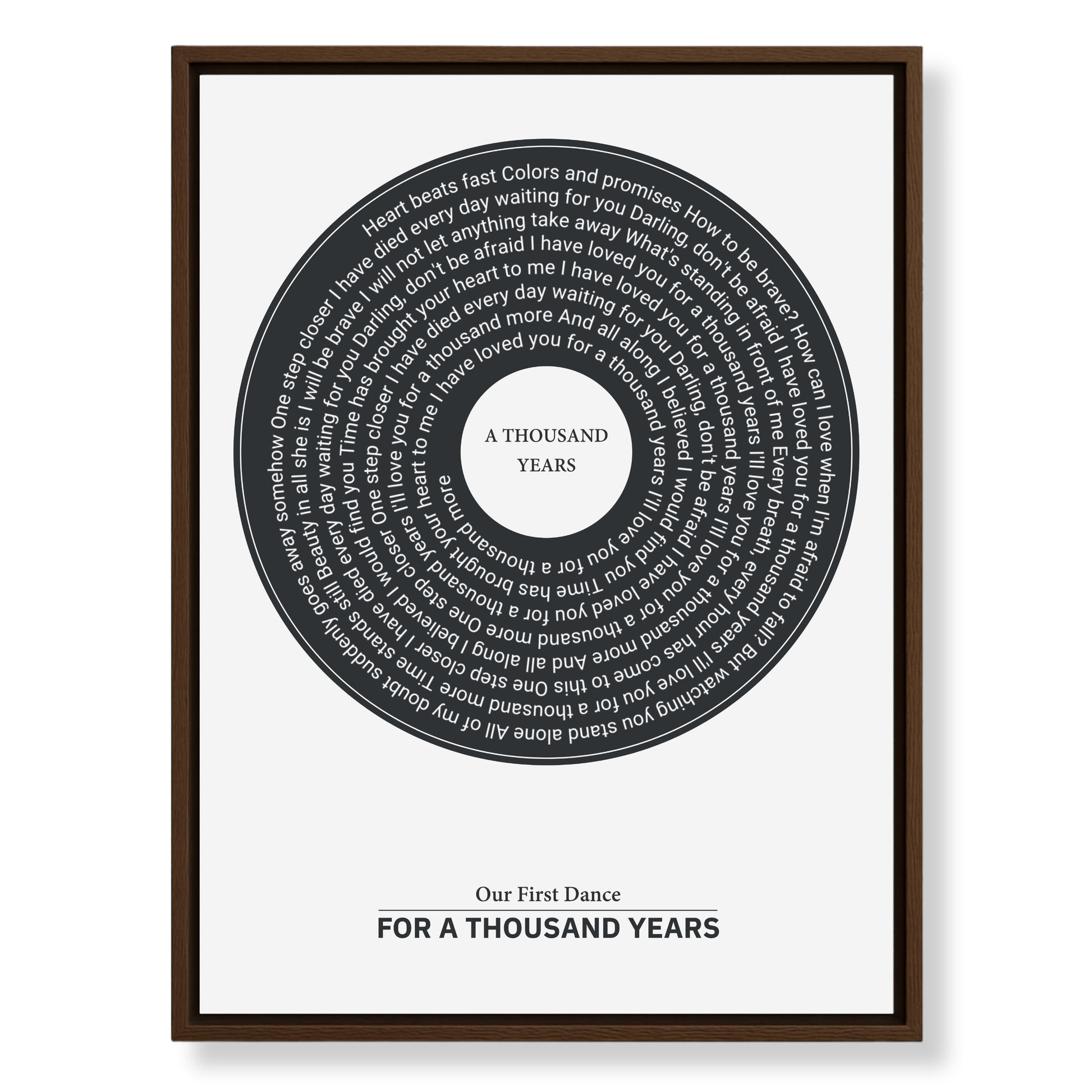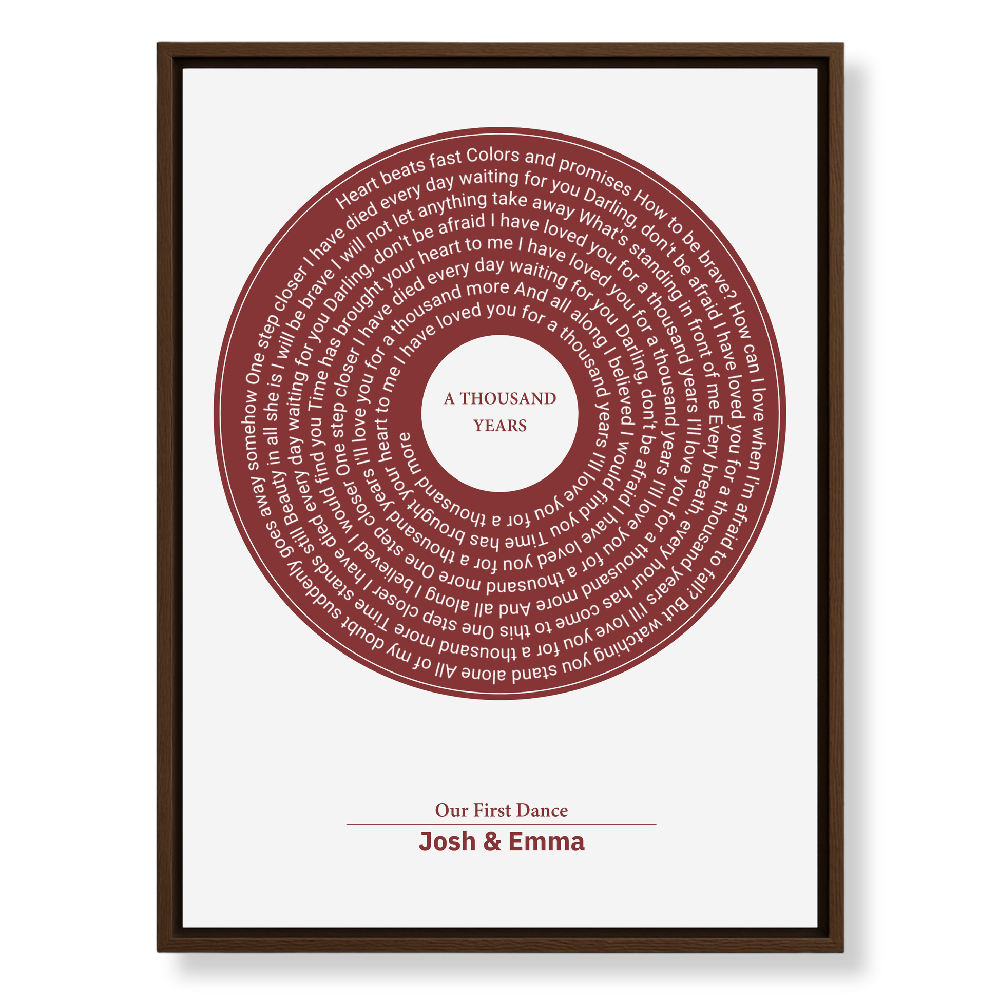 Upgrade your personalised Eversong with our Framed Retro Vinyl Lyrics Canvas — a beautifully designed piece of artwork that transforms your custom song into a timeless keepsake.