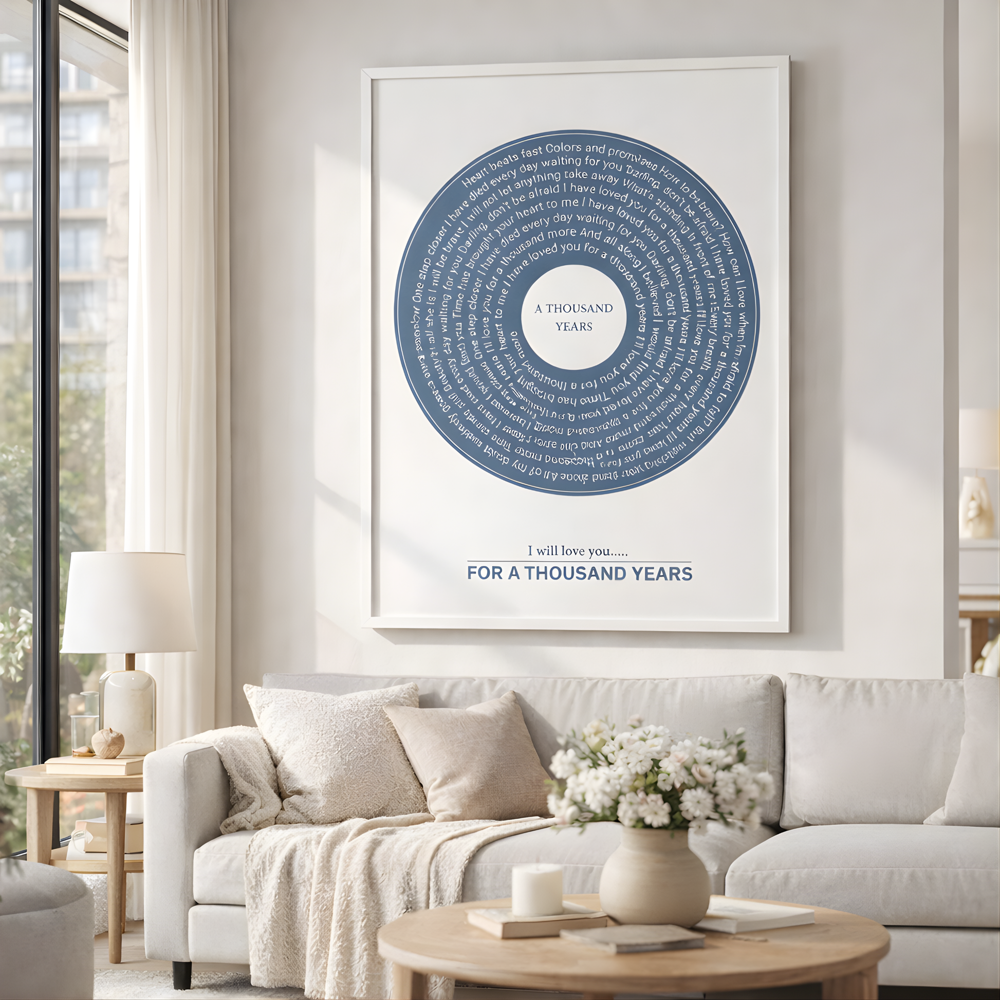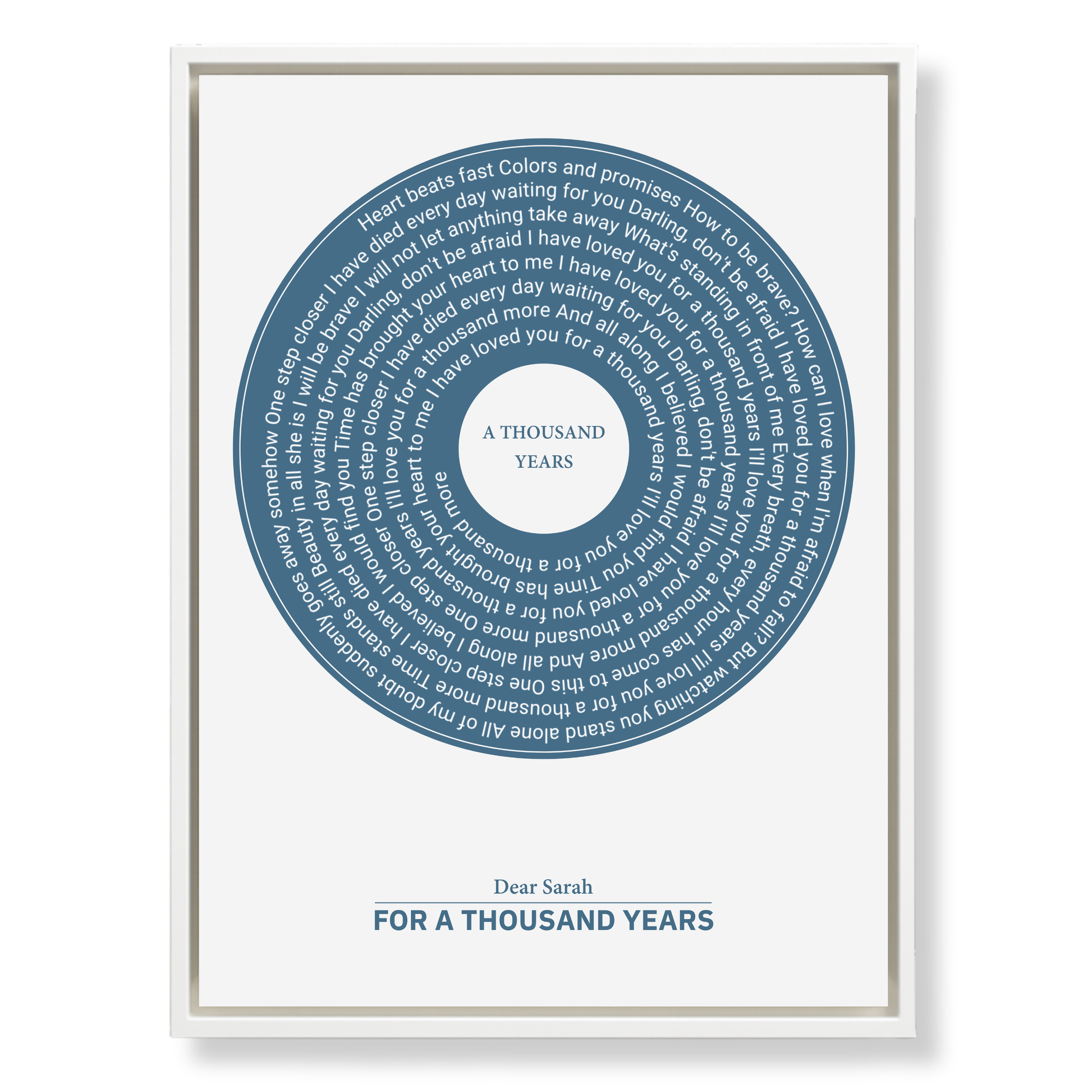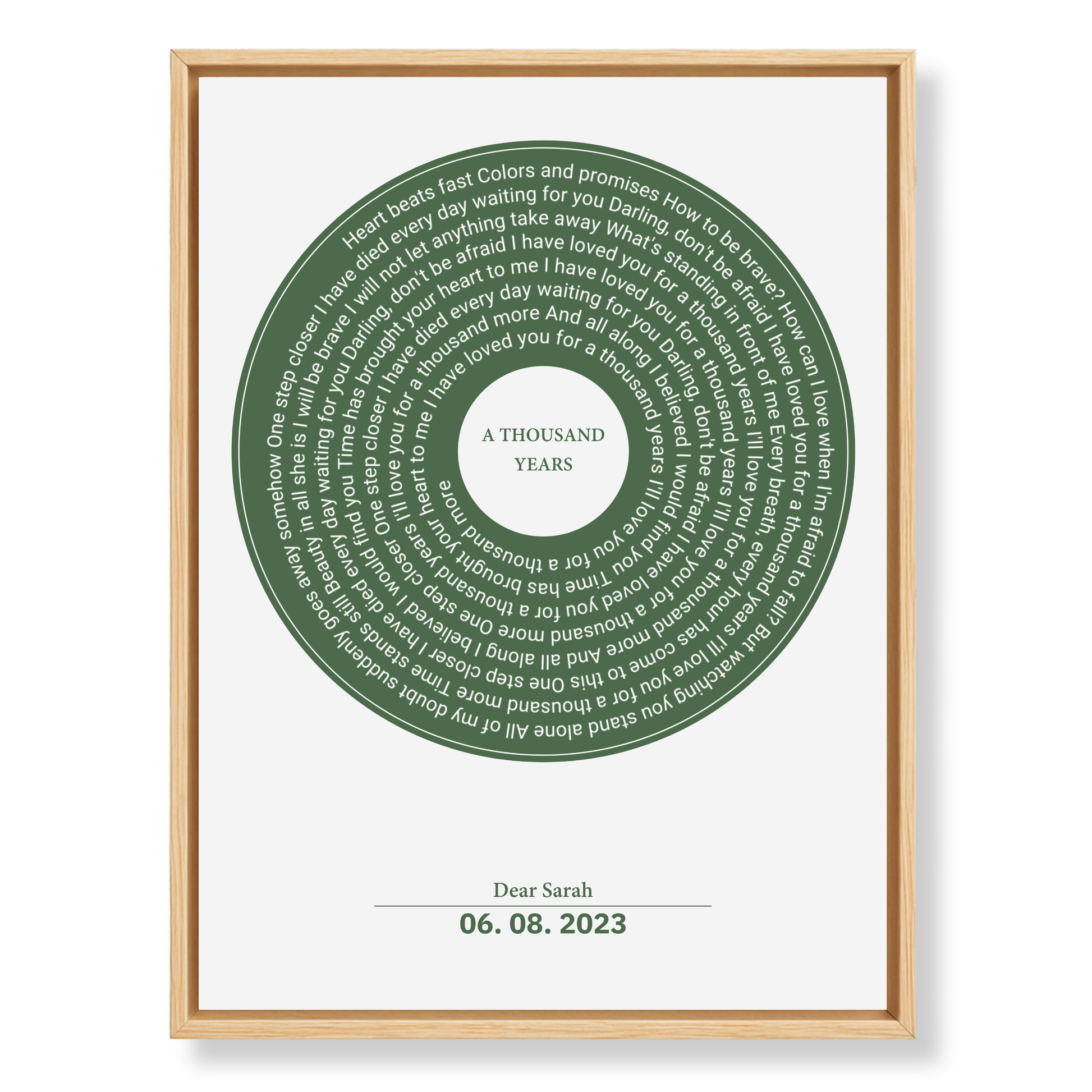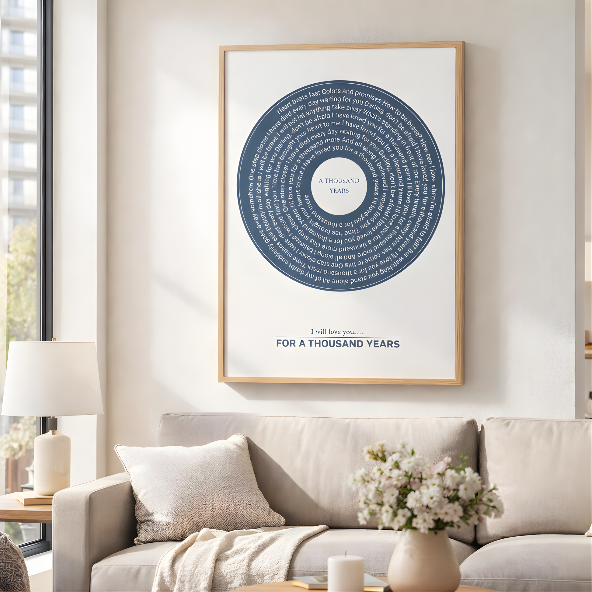 Upgrade your personalised Eversong with our Framed Retro Vinyl Lyrics Canvas — a beautifully designed piece of artwork that transforms your custom song into a timeless keepsake.
